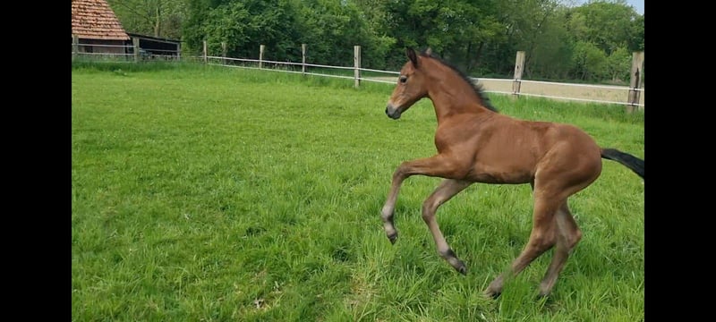 For sale is a lovely broodmare by Casino x Champion du Lys x Capitol I. The mare achieved success in show jumping competitions up to 1.30 m as a 5- and 6-year-old and was competed by a young rider in jumping classes up to 1.15 m from the age of 7. In 2024, she was bred due to an injury. In 2025, she foaled a fantastic foal by Chacco's Son I and proved to be an excellent mother. Due to a herd reduction, she was not re-bred this year and is now available for your breeding plans. (She was successfully covered on her first attempt). She is easy to handle, shoe- and loading-wise, and stands quietly. Please note: This mare is being sold solely as a broodmare (sales contract required).