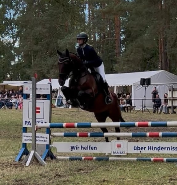 Wir bieten hier ein absolut erfahrenes, stets gesundes leichtfüßige Stute. Sie ist die letzten Jahre einige Schleifen mit einer jungen Amazone bis in den L-Bereich im Springen erreicht. Sie ist jetzt 15 Jahre und war stets gesund und fit, so dass wir davon ausgehen, dass das noch lange so bleibt. Sie ist eine agile Stute , am Sprung mit viel Geschick und mit praktischen Grundgangarten ausgestattet. Auch züchtertisch bietet die Stute mit ihren bekannten Muttervater Calypso II Möglichkeiten. Die Stute sucht nun einen neuen Wirkungskreis, in der sie neue Menschen glücklich macht.