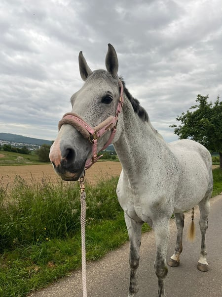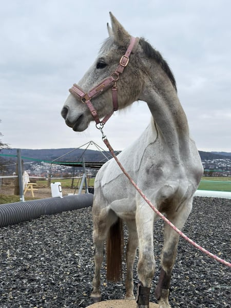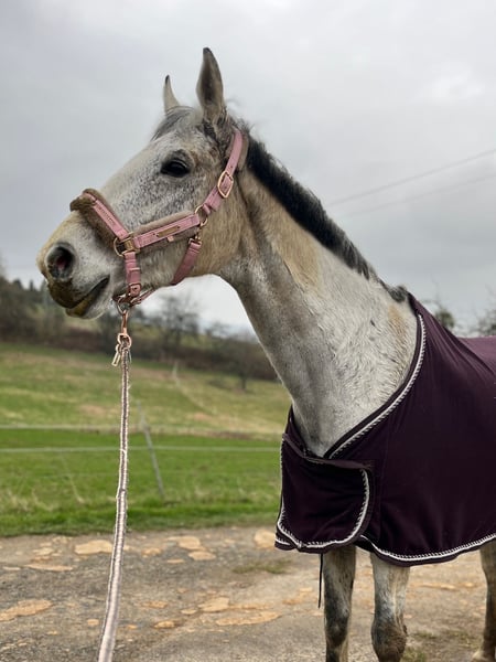 Peggy ist eine wundervolle Hannoveraner Schimmelstute (2008), die man einfach ins Herz schließen muss. Sie ist ein echtes Verlasspferd, immer freundlich, aufmerksam und sehr menschenbezogen – eine Seele von Pferd ✨ Sie liebt den Kontakt zu „ihren“ Menschen, ist unglaublich lieb im Umgang und macht einfach alles mit. Als kleiner Clown auf vier Hufen sorgt sie täglich für gute Laune und ist dabei stets brav und unerschrocken. Was Peggy ausmacht: • Sehr lieb und zuverlässig • Auch von Kindern problemlos zu reiten • Auf dem Reitplatz angenehm und unkompliziert • Im Gelände super motiviert, mit etwas Temperament, aber immer händelbar • Springt gerne, wurde bei uns aber nicht weiter gefördert • Schmiedefromm und brav im Alltag • Kennt Offenstall- sowie Boxenhaltung Gesundheit: Peggy hat ein allergiebedingtes Asthma, das mit Inhalation und Cetirizin gut eingestellt ist. Sie ist dadurch nicht eingeschränkt. Peggy ist kein Sportpferd, sondern ein echtes Freizeit- und Herzenspferd, das seinem Menschen treu zur Seite steht und viel Freude schenkt. Wer ein ehrliches, liebes Pferd sucht, wird sie lieben . Sie wird mit sämtlichen Zubehör wie zb Flexineb ,Sattel ect .