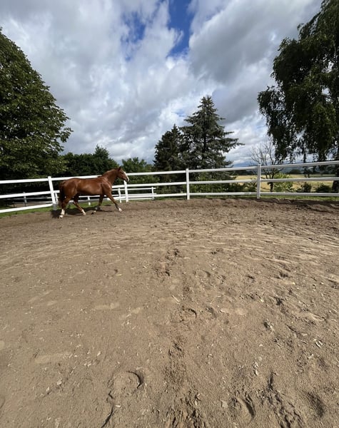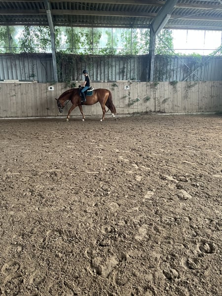 Hannoveraner Stute, 17 Jahre – aus Weltmeyer-Linie Ich verkaufe meine Stute schweren Herzens, da mein Herz mittlerweile mehr im Motorsport als im Reitsport liegt. • Alter/Abstammung: 17 Jahre, Weltmeyer-Abstammung, Stockmaß 1.70m • Gesundheit: auf einem Auge seit dem 4. Lebensjahr blind, (periodisch Augenentzündung wurde damals zumindest für das eine Auge zu spät entdeckt/ behandelt ) das gesunde Auge ist unauffällig (damals wurde Augenwasser getauscht). Das erblindete Auge ist noch drin und macht keine Probleme! (Muss im Somne eine fliegenmaske tragen ) Sie war bisher nie ernsthaft krank , keine Kolik bisher. • Nutzung: Kein Anfängerpferd, geeignet für erfahrene Reiter mit ruhiger Hand und klarer Ausstrahlung. • Charakter: Sensibel, benötigt einen Reiter, der ihr Sicherheit vermittelt. Hat man ihr Vertrauen gewonnen, ist sie ein absolutes Traumpferd. • Disziplin: Eher dressurorientiert, geht auch kleinere Sprünge. Gelände mit Begleitpferd möglich. • Haltung: Boxen- und Offenstallhaltung gewohnt. • Zucht: Bisher kein Fohlen. Sie ist reitbar auf dem Platz (auch wenn nebenan Pferde laufen), zeigt sich dort zuverlässig. Für den Freizeitbereich – insbesondere Dressur – bestens geeignet. Unter dem richtigen Reiter hat sie wirklich schöne Gänge und macht auch keinen Unsinn wie zb Buckeln . Bei mir und meiner Trainerin hat sie nie gebuckelt. Bei schwachen Reiter kann ein absetzen erfolgen. Diesen Fall hatten wir schon bei einem probereiten (bzgl Reitbeteiligung) Vollständig geimpft , Zähne werden Mitte Dez nochmal gemacht , Hufe werden alle 6 Wochen vom Hufpfleger bearbeitet . Als Zuchtstute auch super geeignet! Nur in beste Hände abzugeben! Alle Tieratzt Rechnung ab 2022 sind vorhanden und dürfen gerne eingesehen werden. Kein Notverkauf!! Keine Händler oder Schulbetrieb Anfragen! Preis ist inkl Zubehör (Sattel , Trense, Putzkoffer, Decken,) Da ich mich aus dem Reitsport komplett zurückziehen möchte!
