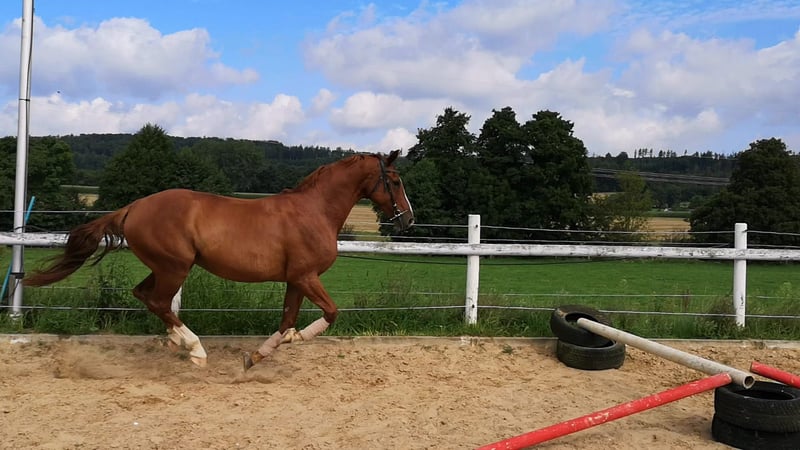 Klacz Hannoveraner, 17 lat, linia Weltmeyera Z ciężkim sercem sprzedaję moją klacz, ponieważ moje serce coraz bardziej skłania się ku sportom motorowym niż jeździectwu. • Wiek / Rodowód: 17 lat, linia Weltmeyera, wzrost 170 cm • Zdrowie: od czwartego roku życia ślepota na jedno oko, (okresowe zapalenie oka zostało wtedy niestety wykryte i leczone z opóźnieniem, szczególnie w przypadku jednego oka) zdrowe oko jest bez zmian (wówczas wymieniono wodę z oka). Oko, które jest już niewidzące, nadal jest w ciele i nie sprawia problemów! (Musi w lecie nosić maskę na owady). Dotychczas nie była poważnie chora, nie miała kolki. • Użytkowanie: nie jest to koń dla początkujących, odpowiednia dla doświadczonych jeźdźców z opanowaną ręką i spokojną postawą. • Charakter: wrażliwa, potrzebuje jeźdźca, który zapewni jej poczucie bezpieczeństwa. Po zyskaniu jej zaufania, jest to koń idealny na partnera do jazdy. • Dyscyplina: raczej ukierunkowana na ujeżdżenie, potrafi także pokonać niewielkie przeszkody. Możliwa jazda w terenie z towarzyszącym koniem. • Hodowla: przyzwyczajona do stajni zamkniętej i padoku otwartego. • Hodowla: dotychczas nie miała źrebięcia. Jest jeźdzalna na placu (nawet przy hałaśliwych końach obok), zachowuje się tam pewnie. Doskonała do rekreacji, szczególnie do ujeżdżenia. Pod odpowiednim jeźdźcem ma naprawdę piękne chodzenie i nie zachowuje się nieodpowiednio, np. nie kłusuje bez powodu. U mnie i u mojej trenerki nigdy nie kłusowała bez powodu. Przy słabszym jeźdźcu może dojść do zrzutu. Taki przypadek miał miejsce podczas jazdy próbnej (np. w ramach jazdy konnej na wynajem). W pełni zaszczepiona, zęby będą ponownie sprawdzane w połowie grudnia, kopyta co 6 tygodni pielęgnuje podkuwacz. Jako klacz hodowlana również świetnie się sprawdzi! Oddaję tylko w najlepsze ręce! Wszystkie faktury od weterynarza od 2022 roku są dostępne i chętnie można je obejrzeć. Brak pilnej sprzedaży!! Proszę nie pytać hodowców ani szkół jeździeckich! Cena obejmuje wyposażenie (siodło, ogłowie, kuferek na akcesoria, derki). Chcę całkowicie wycofać się z jeździectwa!