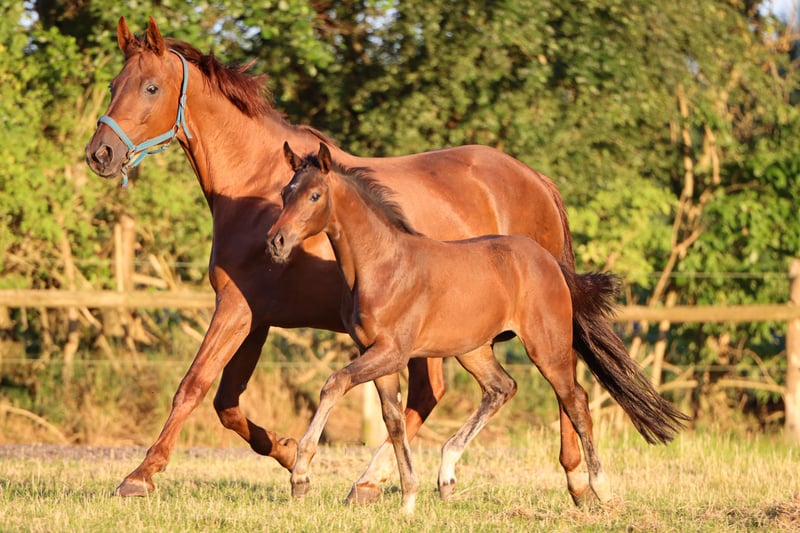 Exceptional filly with a promising pedigree, showing a friendly, curious, and open demeanor in daily handling. She already impresses with three above-average basic gaits. Her correct conformation and friendly, open character make her a true prospect for the future in dressage. She is healthy, well-developed, and is growing up in a species-appropriate environment. Her sire, St. Emilion, is a modern, high-performance Oldenburg premium stallion with an international pedigree, excellent basic gaits, and high breeding value. He represents the highest dressage quality and is already setting standards in breeding and sport. He captivates with elegance, rhythm, and impulsion, as well as a first-class pedigree that leaves nothing to be desired. St. Emilion is considered exceptionally rideable, eager to perform, and cooperative. He impresses with a natural uphill tendency, energetic take-off, and relaxation. The dam is by Don Frederico and was herself successful up to L-level dressage, further emphasizing the athletic quality of this foal. For any questions, please feel free to contact us by phone or WhatsApp at 0173/6048021.