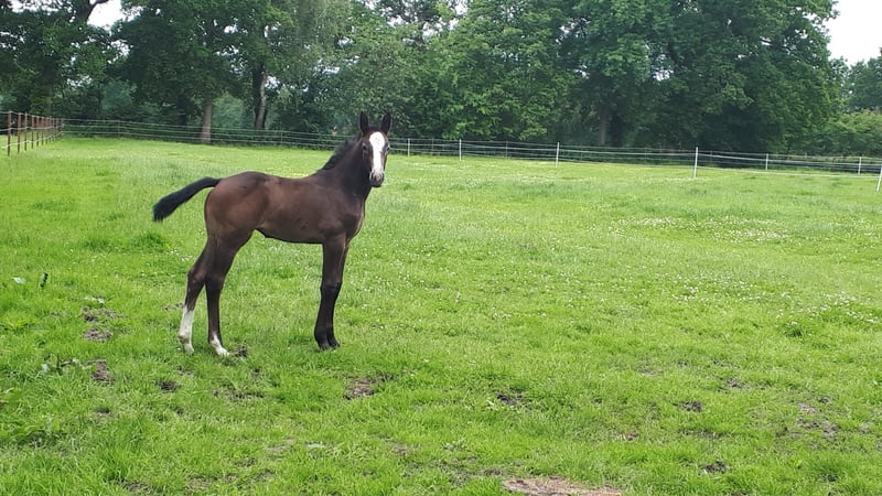 **Anuncio de venta: Hermoso potro de Hannover a la venta** Bonito potro con buenos movimientos, hijo de Covalliero / Diacontinus / Quadam. La línea materna proviene del Stamm 318d1 de Holstein (Cumano). De esta línea materna han salido varios caballos de subasta, yeguas premiadas del estado, así como sementales aprobados y caballos calificados para el Campeonato Nacional. Royal Black Diamond 4 y Quartar (España) muy exitosos en pruebas de doma.