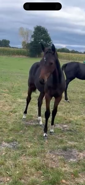 Filly foal by I’m Special de Muze x Carembar de Muze x Namelus R Full sibling, born in 2020, currently 16.9 hh, in her first competition season with 7 out of 8 rounds in show jumping courses clear of faults and placed in the Young Jumpers class. Ida has been weaned and is currently being raised in a species-appropriate environment, where she can remain even after sale. Knows leading and has been hoofed. Gelding premium awarded by the Hanoverian Verband at the foal show in Oyten.