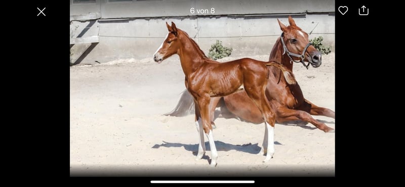 A causa della riduzione del bestiame, vendiamo la nostra fattrice da 3 stelle Tequila, nata nel 2005. Dopo due trasferimenti di embrioni, abbiamo ottenuto nel 2025 3 puledri TOP - vedi ultime immagini. 2 puledri maschi sono in vendita qui. Tequila è in ottima forma nonostante la sua età e si presenta sempre molto bene durante la gravidanza e anche dopo. Ha affrontato il trasferimento di embrioni senza alcun problema. Rimondo: Tequila 251 Tequila è stata premiata con il massimo riconoscimento PSH (Programma di allevamento di cavalli da salto Hannover) con tre stelle ***. Tequila ha diversi discendenti di grande successo nello sport. È gravida per il 2026 dal stallone del Landgestüt Quempas. Dopo lo svezzamento del puledro, può trasferirsi in autunno - oppure eventualmente rimanere in pensione. Posizione 06463