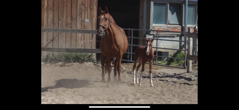 Z powodu redukcji stanu sprzedajemy naszą klacz 3-gwiazdkową Tequilę, ur. w 2005 roku. Po dwóch transferach embrionalnych w 2025 roku otrzymaliśmy 3 TOP źrebaki - zobacz ostatnie zdjęcia. 2 ogierki są na sprzedaż. Mimo swojego wieku Tequila jest w doskonałej formie i w ciąży, a także po niej zawsze wygląda bardzo dobrze. Transfer embrionalny przebiegł bezproblemowo. Rimondo: Tequila 251 Tequila została odznaczona najwyższą nagrodą PSH (Program Hodowli Koni Skokowych Hanowerskich) z trzema gwiazdkami ***. Tequila ma kilku bardzo udanych potomków w sporcie. Jest w ciąży na 2026 rok z ogierem Quempas z Landgestüt. Po odsadzeniu źrebaka może się przeprowadzić jesienią - lub ewentualnie pozostać w pensjonacie. Lokalizacja 06463