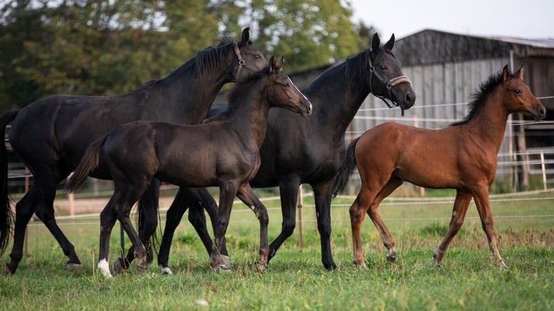 Diese herrliche Nachwuchsstute ist korrekt konstruiert und hat drei sehr gute und elastische Grundgangarten. Toller Sportpferdetyp in der edlen Rappfarbe und moderne Dressurabstammung! Ein ideales Pferd für ambitionierte Reiter, die sich eine erfolgreiche Zukunft im Dressursport wünschen und dafür das Pferd selbst formen möchten. Mit diesem vielversprechenden Fohlen stehen Ihnen die Wege offen. Vater ist der sehr rittige Infantino (Hengsthaltung Determann). Infantino ist bereits altersgemäß in der Dressur Kl. M siegreich und legte einen sehr guten 14 Tage-Test mit einer hervorragenden Rittigkeitsnote ab (Fremdreiter 9,5 und Dressur-Endnote 8,49). Wir erwarten, dass Infantinos enorme Rittigkeit, seine Leistungsbereitschaft und seine zuverlässige Einstellung auf dieses Nachwuchspferd übergehen. Über die Mutter von Johnson-Fidertanz-Rilke-Donnerschlag wird die sportliche Veranlagung ideal abgesichert. Alle ihre Geschwister sind sporterfolgreich und platziert. Ihr Vater ist der berühmte KWPN-Hengst Johnson (Glock’s Johnson TN N.O.P., "Nederlands Olympiade Paard"), der Platz 1 des WBFSH-Hengst-Rankings 2022, 2023 und 2024 einnimmt und damit als weltbester Dressurvererber gilt. Johnson platzierte sich bei den Olympischen Spielen in Rio de Janeiro, gewann EM-Mannschaftsgold, EM-Einzelbronze und Mannschaftsbronze bei den Weltreiterspielen. Zudem erreichte er etliche weitere nationale und internationale Grand Prix-Erfolge. Aus dem kleinen Hannoveraner Stutenstamm der Nipsia stammen der gekörte Hengst Rapallo Razzo (v. Romanoff J, M-Springen) sowie u.a. die sporterfolgreichen Pferde Don Pasquale 8 (v. Danone I, M-Dressur), Faustinus 2 (v. Fidertanz, M-Dressur), Jackie Brown 3 (v. Johnson, M-Dressur), La Fenice 3 (v. Londonderry, M-Dressur), Luna Rossa 3 (v. Londonderry, M-Dressur), Remigius (v. Ravallo, intern. Grand Prix), St.Pr.St. Romantica (v. Royal Dance, M-Dressur). Für weitere Informationen und Besichtigungstermine kontaktieren Sie uns bitte.