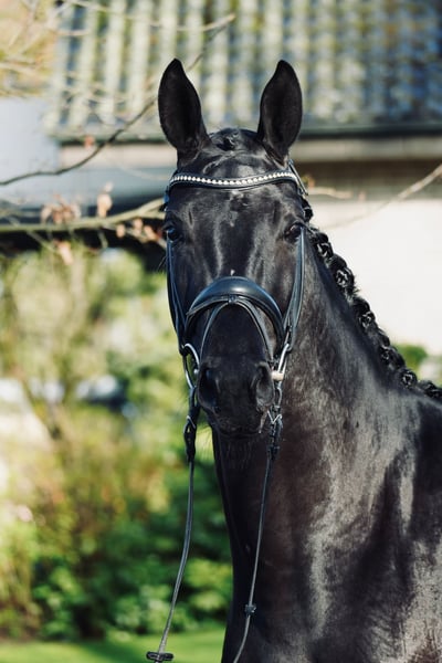 Très belle jument de 3 ans, noire comme du cuir, avec beaucoup de présence et une allure moderne. Elle se distingue par d'excellentes allures de base, beaucoup d'énergie et une grande envie de performer. Pleine de tempérament, elle reste toujours sincère, travailleuse et agréable au quotidien. Une jeune cheval moderne et de grande qualité, dotée des meilleures qualités pour poursuivre son dressage – idéale pour les cavaliers ambitieux à la recherche d’un jeune cheval motivé et prometteur.