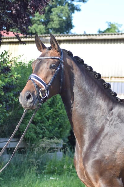 Elegant Young Dressage Mare with Great Potential Pedigree: Filou × Destano Gender: Mare Age: 3 years Discipline: Dressage This typy 3-year-old mare impresses with her excellent lineage (Filou – Destano) and harmonious conformation. She already demonstrates very good rideability under saddle and excels with three above-average basic gaits — a lively trot, a rhythmical walk, and a powerful canter. With her balanced temperament, eagerness to learn, and movement potential, she is the ideal young mare for an ambitious rider or for development in dressage sport. Features: Currently backed, consistently willing to work, and easy to handle Regularly presented to the farrier and veterinarian No vices, healthy, and correctly conformed X-rays of the back and neck are available. Directly from the breeder. Location: 29336
