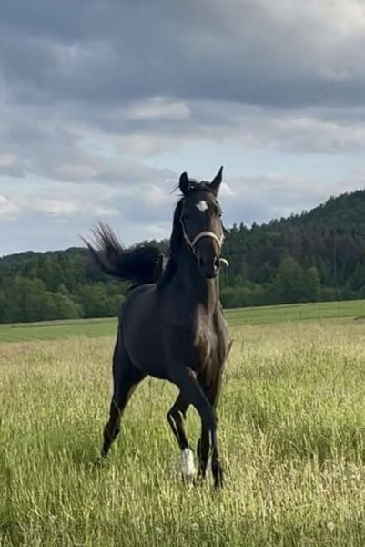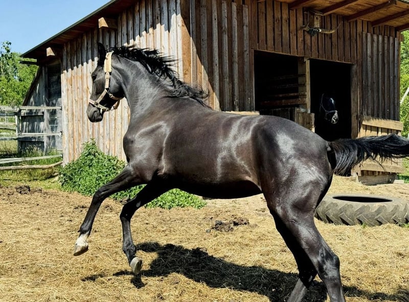 Lamentablemente, debido a motivos de salud, debemos dejar nuestra pequeña pero selecta cría de caballos Hannoverianos. Quien busque un potro joven de calidad, con carácter muy dulce, estructura correcta y movimientos enérgicos, encontrará en nuestra Dakota la opción perfecta. La hermosa yegua es muy tranquila y serena para su edad, además de ser dócil y manejable, acepta las herraduras y se deja cargar en el remolque sin problema. También se ha trabajado un poco en el suelo con ella, y siempre demuestra ser muy dispuesta a aprender. ¡Una yegua joven realmente hermosa, con un manto negro y una excelente línea de sangre en doma clásica!