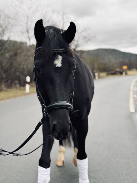 Zum Verkauf steht eine qualitätsvolle 3-jährige Verbandsprämienstute mit viel Perspektive für Sport und/oder Zucht. Die Stute befindet sich altersgerecht in Ausbildung. Sie ist angeritten, sattelfest und war bisher etwa 10-mal unter dem Sattel. Beim Aufsteigen zeigt sie sich brav und unkompliziert. Insgesamt präsentiert sie sich lernwillig, aufmerksam und mit positiver Arbeitseinstellung. Seit Dezember befindet sie sich in unserem Besitz und wurde schonend sowie mit Ruhe und Geduld ausgebildet. Im täglichen Umgang ist sie freundlich und kooperativ. Sie überzeugt durch ihren modernen Typ, korrekten Körperbau sowie gute Bewegungsqualität. Besichtigung nach Absprache möglich.