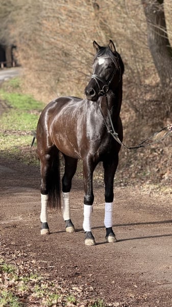 Elegante 4-jährige Stute mit tollem Charakter zu verkaufen Danuta ist eine wunderschöne, 4-jährige Stute mit einem Stockmaß von ca. 1,68 m. Sie wurde liebevoll aufgezogen und überzeugt durch ihr sanftes, ausgeglichenes Wesen sowie ihre hohe Lernbereitschaft und ihr großes Talent für den Dressursport. Danuta hat bereits eine sehr gute Basis in der Bodenarbeit und zeigt sich dort aufmerksam, brav und menschenbezogen. Sie ist angeritten und kennt die ersten Schritte unter dem Sattel. Dabei zeigt sie sich stets kooperativ und möchte ihrem Menschen gefallen. Durch ihre Abstammung (Dynamic Dream x Heinrich Heine x Reverend) bringt sie außerdem interessante Voraussetzungen für den Dressursport mit, das bestätigt Ihre überdurchschnittlichen Grundgangarten und ihre Rittigkeit. Sie ist eine feinfühlige, freundliche Stute, die bei weiterer Förderung sicher viel Potenzial mitbringt. Wir wünschen uns für sie ein liebevolles Zuhause, in dem sie weiter gefördert wird. Bei Interesse und für weitere Informationen freuen wir uns über eine Nachricht.