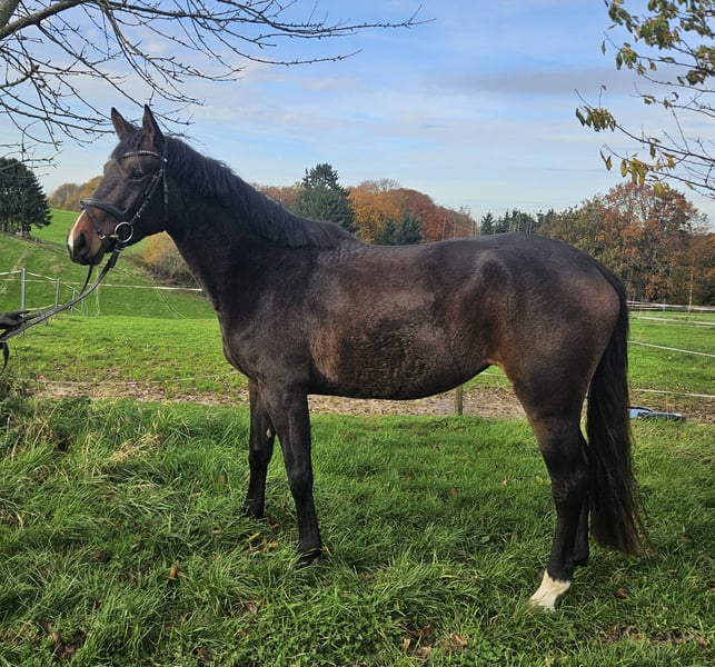 Beautiful 3-year-old mare seeking a lifelong companion. This lovely, gentle, and exceptionally calm mare has been ridden by an amateur rider since mid-September. She is very rideable and well-behaved. She possesses three excellent basic gaits and is soft to sit. She will undoubtedly make a reliable partner for dressage and trail riding. She impresses with her open-minded personality and her nearly fearless character. Elfentraum, nicknamed Elfi, is homebred and has grown up with us in a species-appropriate environment. She is very human-oriented and was raised in a herd. She has already been lightly lunged and backed. She has a current, good clinical pre-purchase examination. We are looking for a loving rider and a new home where Elfi can be turned out on pasture in summer and has the opportunity for regular free movement during the winter.