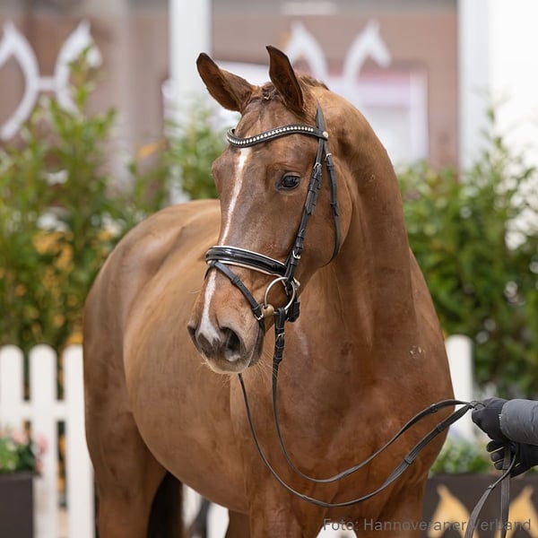 Quiara ist ein Dressurpferd mit großer Leistungsbereitschaft. Kraftvoll in den Bewegungen zeigt sie im Training zunehmend mehr Losgelassenheit und gewinnt an Ausdrucksstärke. Ihre Halbschwester La Rose di Venti v. Londontime ist bereits in Aufbauprüfungen der Klasse L erfolgreich. Der weitere Stutenstamm wird von Boticelli v. Couleur-Fürst (DRE: M** mit Linda Weiß) geprägt. 1. Generation Aufbauprüfungen Dressur: HannPrA La Rosa dei Venti/La Rose di Venti v. Londontime (DRE: L). Auktionspferde: Vet+ Bonita v. Borsalino (VA 2024). Bes. Prämientöchter: HannPrA Belina/Belina 40 v. Borsalino. 2. Generation Bes. Prämientöchter: StPr Dala/Dala 6 v. Danone I; StPr Danönchen v. Danone I. 3. Generation Aufbauprüfungen Dressur: Baccara v.Steinberg/Baccara 125 v. Sanssouci (DRE: L,Championat für Reitpferde o.M. 2001,Championat für Reitpferde o.M. 2001). 4. Generation Aufbauprüfungen Springen: StPr Bali/Bali 5 v. Arogno (SPR: L). 5. Generation Sportpferde Dressur: Boticelli 5 v. Couleur-Fürst (DRE: M** mit Linda Weiß). Sportpferde Springen: Bonapard v. Ibikus (SPR: M mit WELLMANN,CLAUDIA). Aufbauprüfungen Springen: Bambi II/Bambi 25 v. Enrico Caruso (SPR: L). Mutter: Danönchen Prämierung: 1xIa. ZL: 12/9 ZSP: Feldprüfung Reitpferd - Trab 8,00 Galopp 7,50 Schritt 7,00 / Durchschnitt Rittigkeit 7,25 / Durchschnitt Springen 6,50 Turniererfolge: DRE: L 1/w. DPF: A 1/1. 1/2. 1/4. 1/5. 1/w. EPR: A 1/2. 1/4. RPF: ohne Klasse 1/5. Großmutter: Baccara v.Steinberg/T. ZL: 4/2 Turniererfolge: DPF: L 1/1. 1/2. 1/4. DPF: A 1/1. 3/2. 3/3. 1/5. RPF: ohne Klasse 1/1. 3/3. 1/4. Das Pferd ist ein Verdener Auktionspferd und wird am 25.01.2026 online versteigert. Vom 12.01. bis zum 25.01. kann das Pferd jeden Tag beim öffentlichen Training besichtigt und ausprobiert werden. Das Startgebot bei der Versteigerung ist 8.000 Euro.