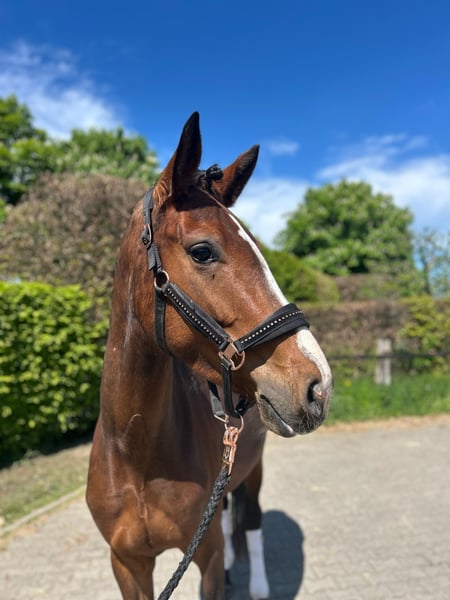 We are selling our 4-year-old mare by Zoom x Ehrentusch from our own breeding. She has been raised with us in a species-appropriate herd environment with daily turnout among mares. She is already lunged, but has not yet been ridden. Due to a lack of time, we would like to sell her into good and supportive hands for further training. If you are interested, please feel free to contact us.