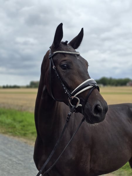 Cheval de jeune talent compact de quatre ans avec un arrière-train actif et une bonne attitude au travail. Toujours en développement, Norla est recommandée pour les cavaliers de dressage ambitieux à la recherche d'un cheval de taille moyenne. Avec sa taille de 166 cm, elle convient idéalement comme cheval pour dames ou pour les cavaliers de taille moyenne, mais elle peut également convenir à des cavaliers plus grands (cavalier dans la vidéo mesurant 190 cm). Norla est fine dans ses membres et légère dans la prise de contact, c'est une jument absolument honnête avec un bon élan vers l'avant. Il est particulièrement remarquable de ressentir la sensation de monte au galop. Elle se déplace toujours en montée et loin sous le centre de gravité. Norla a été présentée une fois lors d'un concours de chevaux montés. La première participation à un concours s'est déroulée sans complication dans tous les processus. Un contrôle vétérinaire des radiographies a été effectué à l'âge de deux ans.