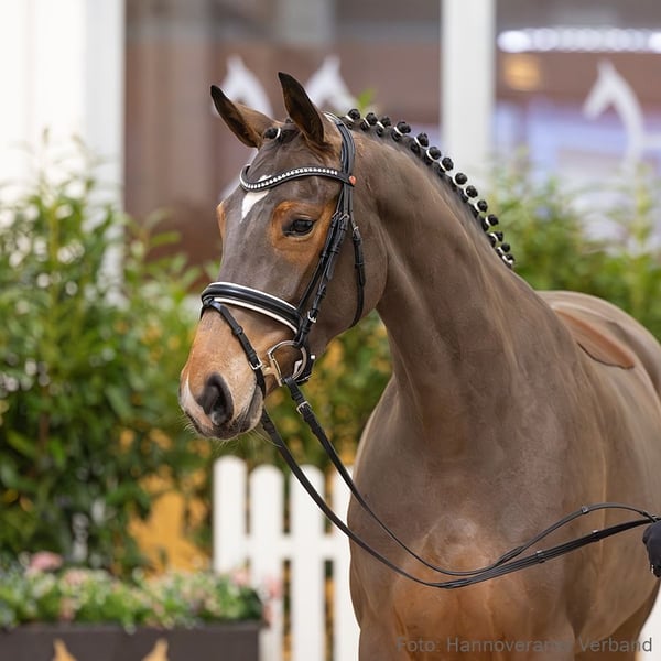 Santa-Luzia ist ein bewegungsstarkes Dressurpferd mit exzellenter Rittigkeit und vorzüglicher Vorbildung. Ihr Halbbruder Summerglow OLD v. Secret war als 4-jähriger Finalteilnehmer bei den Bundeschampionaten 2022 erfolgreich und erzielt bereits Erfolge in S-Dressuren unter Leonie Richter. Die direkte Mutterlinie wird durch herausragende Sportpferde wie Dahoud v. Desiderio (DRE: international Grand Prix mit Diana Porsche) und Belmondo M v. Benicio (DRE: S mit Luisa Stockhausen) geprägt. 1. Generation Sportpferde Dressur: Summerglow OLD v. Secret (DRE: S* mit Leonie Richter,Finalteilnehmer Bundeschampionat 4j.Reitpferde 2022). Aufbauprüfungen Dressur: HannPr Benicia/Benicia 5 v. Benicio (DRE: L). Bes. Prämientöchter: HannPrA Domenica/Domenika M v. Da Costa. 2. Generation Sportpferde Dressur: Dahoud 3 v. Desiderio (DRE: int. Grand Prix mit Diana Porsche,GP - Grand Prix 2025,GPS - Grand Prix Special 2025,GP - Grand Prix 2025,GPS - Grand Prix Special 2025,GP - Grand Prix 2025,Grand Prix Special -international- 2024,Grand Prix -international- 2024,GP - Grand Prix 2024,GP - Grand Prix 2024,Grand Prix Special -international- 2024,Grand Prix -international- 2024,GPS - Grand Prix Special 2023,Grand Prix Special -international- 2023,Grand Prix -international- 2023,GPS - Grand Prix Special 2023,GP - Grand Prix 2023,GP - Grand Prix 2022,GPS - Grand Prix Special 2022,GP - Grand Prix 2022,VA 2016); Belmondo M v. Benicio (DRE: S** mit Luisa Stockhausen); Baron Bernstein v. Bonifatius (DRE: S* mit Vera Hensel,VA 2013); Benks v. Borsalino (DRE: M* mit Carlotta Maria Ritscher). Sportpferde Fahren: Racciano 2 v. Rascalino (Fahren: S** mit Anna Mareike Meier,Europameisterschaften der Vierspänner -Mannsch.-Wrtg.- 2025,Nationenpreis Fahren -Vierspänner-international- 2024,Nationenpreis Fahren -Vierspänner-international- 2023,Deutsche Meisterschaft der Vierspänner -Wertung- 2022,Nationenpreis Fahren -Vierspänner-international- 2022,Nationenpreis Fahren -Vierspänner- -international- 2021,Deutsche Meisterschaft der Vierspänner -Wertung- 2020,Nationenpreis Fahren -Vierspänner- -international- 2018,Deutsches Fahrderby -international- 2017,Deutsche Meisterschaft der Vierspänner -Wertung- 2017,Nationenpreis Fahren -Vierspänner- -international- 2017,Deutsches Fahrderby -international- 2016,Weltmeisterschaft der Vierspänner -Einzelwertung- 2016,Deutsche Meisterschaft der Vierspänner -Wertung- 2016,Deutsche Meisterschaft der Vierspänner -Einzelwertung- 2016,Nationenpreis Fahren -Vierspänner- -international- 2016,Nationenpreis Fahren -Vierspänner- -international- 2016,Europameisterschaft der Vierspänner -Einzelwertung- 2015,Europameisterschaften der Vierspänner -Mannsch.-Wrtg.- 2015,Nationenpreis Fahren -Vierspänner- -international- 2015,VA 2009). Aufbauprüfungen Dressur: Secret Story v. Starnberg (DRE: M mit Felicitas Kirschner); Bolle 26 v. Borsalino (DRE: L); Lloyd 48 v. Lissaro (DRE: L). Auktionspferde: Monte Negro v. Maracaná (FoVA 2020); Danja v. Desiderio (VA 2020); Diablo 102 v. Dancier (VA 2010); StPr Belinda M v. Belissimo M (VA 2008: 170.000 €,Louis Wiegels-Schau Sandbostel 2008); Piano 50 v. Prince Thatch (VA 2005). Bes. Prämientöchter: HannPrA Damour v. Dynamic Dream; HannPr Felizitas/Felizita 4 v. Fürst Belissaro (Herwart von der Decken-Schau Verden 2019); HannPrA Destina M v. Desiderio; StPr Delicious Dea v. Dancier (Herwart von der Decken-Schau Verden 2012); StPr Donna Diana/Donna Diana 42 v. Dancier. 3. Generation Sportpferde Dressur: Wyoming 130 v. Weltmeyer (DRE: int. S mit Veronique Henschen,Dressurpf.Kl.M-WM Jg.Pferde 6j. 2002,Dressurpf.Bundeschamp.Kl.L 2001,VA 1999: 50.000 €); Basali v. Belissimo M (DRE: S** mit Flore Winne); Royal Magic 19 v. Royal Classic (DRE: S* mit Marion Schleypen,VA 2014); PK Happy Hippo v. Hampton (DRE: S* mit Kristina Felicitas Kutter); StPrA Royal Rose M v. Royal Classic (DRE: M** mit Anja Kreitel-Lüschow,VA 2013,Siegerstute Herwart von der Decken-Schau Verden 2013); Federtanz WG v. Franziskus (DRE: M* mit Luisa Gläßer); Lord of Liberty M v. Le Vivaldi (DRE: M* mit Melissa Högenauer); PK Hakuna Matata v. Hampton (DRE: M* mit Kristina Felicitas Kutter); Mirage 52 v. Mont du Cantal (DRE: M mit Nöthen,Bernd,VA 1996). Sportpferde Vielseitigkeit: LS-V Halle Berry/PK Halle Berry v. His Highness (VS: int. M mit Csaba Sarközi). Aufbauprüfungen Dressur: HannPrA Sweet April/PK Sweet April v. Secret (DRE: M mit Kristina Felicitas Kutter); gek. Hengst Vitation v. Vitalis (DRE: M mit Jillian Wyrobnik,Championat f. Reitpferde 2021,Verden 2019,HM 2019); Simpson Snuggles v. Secret (DRE: L); Fiodoro v. Foundation (DRE: L); Fleur de la Nuit 3 v. Fürst Belissaro (DRE: L); PK Damseys Delaney v. Damsey (DRE: L). Aufbauprüfungen Springen: Comtesse/Comtesse 203 v. Coolidge (SPR: L). Auktionspferde: HannPrA Flore M v. Foundation (VA 2016,Herwart von der Decken-Schau Verden 2016); Sailor Moon v. Stalypso (VA 2012); Warino 62 v. Weltmeyer (VA 2011); Whitney v. White Star (VA 2004); Waleska/Waleska 288 v. Weltmeyer (VA 2002). Bes. Prämientöchter: HannPr Miranda v. Martinez; HannPr Fiona v. Foundation; HannPrA Shakira/Shakira 467 v. Spörcken (Herwart von der Decken-Schau Verden 2015); StPrA Sabrina/Santara 9 v. San Remo; StPr Walencia v. Weltmeyer (Herwart von der Decken-Schau Verden 2009); StPr Waluga/Waluga 18 v. Weltmeyer; StPr Wienesse/Whitefield's Su v. Weltmeyer; StPr Weltmariechen v. Weltmeyer. 4. Generation Sportpferde Dressur: Dujardin d'Arx v. Dancier (DRE: int. S* mit Clemence Audi Buddio); Magic Mike 11 v. Millennium (DRE: S** mit Felix Kneese); Desmond Tutu v. Dancier (DRE: S* mit Lena Haßmann); Amaro 41 v. Alabaster (DRE: S mit Lenz,Jörg); Linus 229 v. Londonderry (DRE: M** mit Sandro Korff); Bon Noir v. Bon Coeur (DRE: M* mit Felicia Sophie Franzen); Leandro/Leandro 102 v. Lancier (DRE: M mit Christiane Müller). Sportpferde Springen: Gigolo 217 v. Grenadier (SPR: S mit Stein,Walter); Estilo v. Earl (SPR: 1,30 m mit Linda Schröder). Aufba