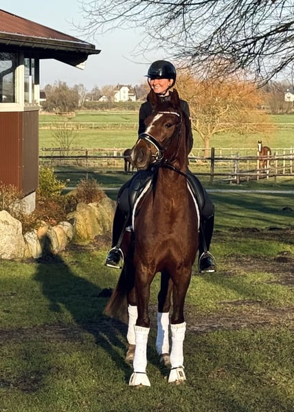 Our 4-year-old mare, Vogue, is ready for a new home. She was born and raised with us and was gently backed last year. From the very beginning, she has proven to be very well-behaved, rideable, and confident in new situations. In daily training, Vogue is a real pleasure to work with due to her uncomplicated, friendly, curious, and open-minded nature. She is accustomed to riding indoors, on the riding arena, and even on the racetrack. Vogue is also completely sound and easy to load and shoe. Thanks to her excellent pedigree, she could also be of interest to breeders. We are offering Vogue at a significantly reduced price due to a medical condition, well below her actual value. I am happy to provide more information at 0151-55443202. Feel free to send a message.