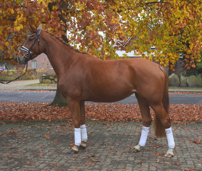 Eine athletisch aufgemachte Stute, die auf den ersten Blick zu überzeugen weiß . Sie verfügt über eine sehr gute Galoppade , raumgreifenden Schritt und eine sehr elastische Trabphase. Top rittig, immer an der Seite seines Reiters. Sie ist sehr nervenstark und sehr einfach zu reiten. Mehr Infos finden Sie auf unserer Homepage. Probereiten jederzeit nach Absprache möglich.