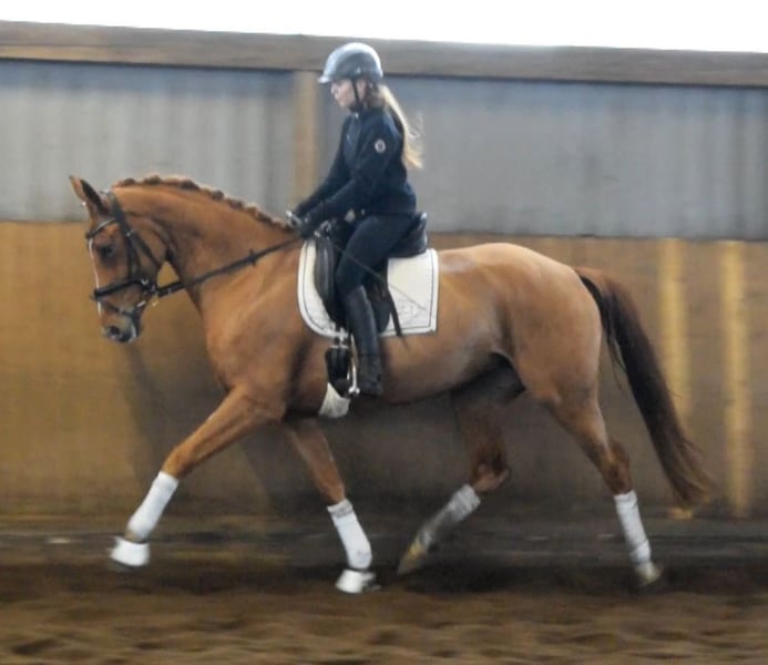 Eine athletisch aufgemachte Stute, die auf den ersten Blick zu überzeugen weiß . Sie verfügt über eine sehr gute Galoppade , raumgreifenden Schritt und eine sehr elastische Trabphase. Top rittig, immer an der Seite seines Reiters. Sie ist sehr nervenstark und sehr einfach zu reiten, deshalb auch für Kinder und Wiedereinsteiger bestens geeignet. Mehr Infos finden Sie auf unserer Homepage. Probereiten jederzeit nach Absprache möglich.