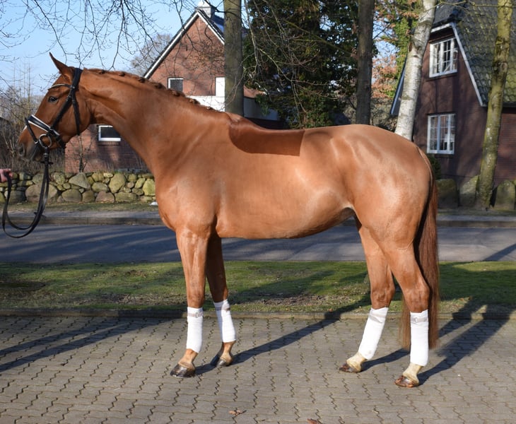 Eine athletisch aufgemachte Stute, die auf den ersten Blick zu überzeugen weiß . Sie verfügt über eine sehr gute Galoppade , raumgreifenden Schritt und eine sehr elastische Trabphase. Top rittig, immer an der Seite seines Reiters. Sie ist sehr nervenstark und sehr einfach zu reiten, deshalb auch für Kinder und Wiedereinsteiger bestens geeignet. Mehr Infos finden Sie auf unserer Homepage. Probereiten jederzeit nach Absprache möglich.