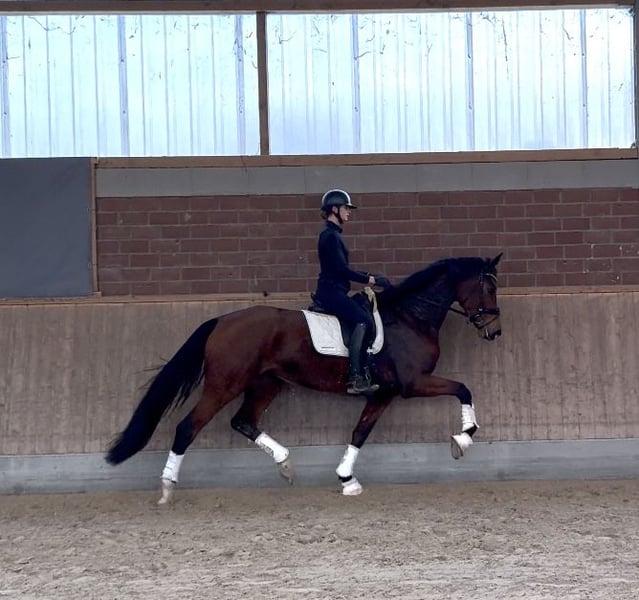 This spacious mare impresses with three very good gaits, with her mechanics in trot and canter being particularly outstanding. She is a sweetheart in daily handling and makes every ride enjoyable. She is currently learning the elementary dressage movements of class L in a playful manner. Anyone looking for a high-quality young horse should not miss this opportunity. She comes directly from the breeder and already has a recent X-ray exam, including neck and back. If you are interested or have any further questions, please feel free to contact me. Viewings and trial rides are available by appointment.