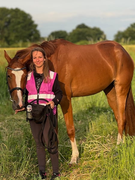 Ich muss mich leider aus zeitlichen Gründen von meiner geliebten Hannoveraner Stute im April 4 Jahre alt und aktuell ca 174cm große Bellatrixi trennen. Bellatrixi ist ein absolutes Traumpferd. Mit ihr kann man alles machen. Sie hat ein liebevolles und ruhiges Wesen. Mit ihr kann man problemlos alleine oder auch in der Gruppe spazieren gehen. Auch Bodenarbeit wie longieren mit Sattel und Trense kennt sie und macht sie super brav mit. Dabei hört sie auch auf die Stimme. Auch das laufen lassen ohne Longe macht sie hervorragend mit und läuft um einen herum. Außerdem kennt sie Trecker, Bullen, Hunde und was alles noch so im Straßenverkehr unterwegs ist, dabei ist sie immer lieb und unerschrocken. Bellatrixi überzeugt nicht nur durch ihre liebevolle und zuverlässige Art, auch ihre Gänge sind ein Traum. Sie schwebt gerade zu über den Boden. Durch ihre Abstammung ist sie auch für die Zucht sehr interessant. Benico ist ihr Vater, Quantensprung und Belissiomo sind ihre Großväter. Siehe Bilder. Bellatrixi ist geimpft und entwurmt. Im Mai wurden ihre Zähne gemacht und der Wolfszahn gezogen. Alle 6-7 Wochen ist sie vorstellig beim Hufschmied und dabei auch total brav. Aktuell hat sie Eisen vorne drauf, wegen einer leichten Fehlstellung zum korrigieren. Bald können die Eisen aber ab bleiben. Bei Fragen stehe ich Ihnen gerne zur Verfügung. Ich wünsche mir für Bellatrixi ein 5 Sterne zu Hause wo es ihr auch wirklich gut geht und sie genau wie bei mir mit Liebe behandelt wird.