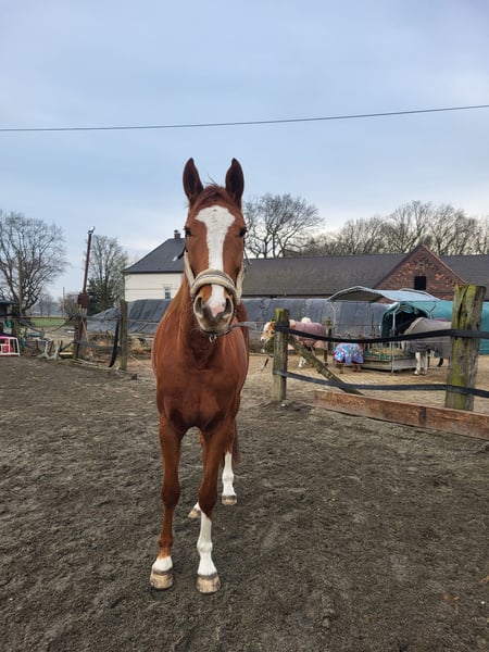 Lamentablemente, por motivos de tiempo, tengo que separar a mi querida yegua Hannoveriana, Bellatrixi, quien tiene 4 años en abril y mide actualmente aproximadamente 1,74 m. Bellatrixi es un caballo de ensueño. Con ella se puede hacer de todo. Tiene un carácter amoroso y tranquilo. Es fácil de manejar tanto en paseos en solitario como en grupo. También conoce el trabajo en el suelo, como la longe y el trabajo con silla y brida, y lo realiza de manera muy obediente. Además, responde bien a la voz. También es excelente en paseos sin longe, caminando alrededor de uno. Por si fuera poco, está familiarizada con tractores, toros, perros y todo lo que se puede encontrar en el tráfico, siempre con un carácter amable y sin miedo. Bellatrixi no solo destaca por su carácter cariñoso y confiable, sino también por sus movimientos, que parecen flotar sobre el suelo. Gracias a su linaje, también es muy interesante para la cría. Su padre es Benico, y sus abuelos son Quantensprung y Belissiomo. Ver fotos. Bellatrixi está vacunada y desparasitada. En mayo le realizaron un tratamiento dental y le extrajeron un diente de perro. Cada 6-7 semanas visita al herrador, y siempre se comporta de manera ejemplar. Actualmente lleva herraduras en las patas delanteras para corregir una leve desviación, pero pronto podrán quitárselas. Estoy a su disposición para cualquier consulta. Mi mayor deseo para Bellatrixi es encontrar un hogar de 5 estrellas donde esté realmente bien cuidada y tratada con amor, igual que conmigo.