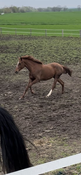 For sale: the 4-year-old mare Valera by Va' Pensiero x Borsalino. Valera has a friendly temperament and is always curious and affectionate. She also possesses above-average basic gaits! Currently, she is kept in a paddock with another mare, is accustomed to living with multiple horses, and has so far shown a rather subordinate rank. She has not been ridden or lunged yet. I am looking for a horse enthusiast who enjoys spending time with her and giving her plenty of attention, which is why she will not be sold to a dealer. For more information, photos, and videos of Valera, please feel free to call me or send a message via WhatsApp to the following number: +49 176 80156296.