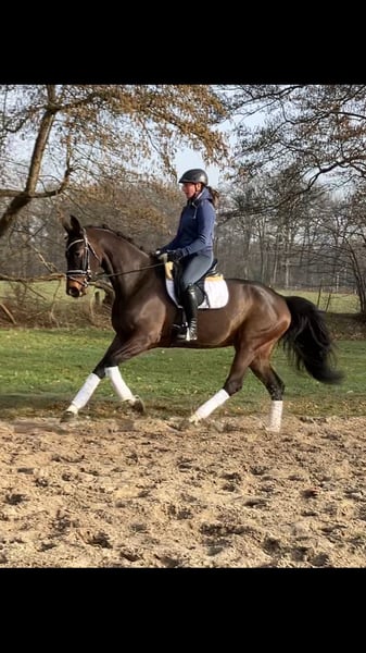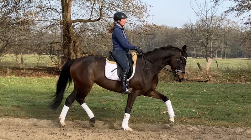 Diese Stute überzeugt nicht nur durch ihre drei Guten Grundgangarten, besonders ihre Galoppade begeistert. Ihr guter Charakter überzeugt ebenso, egal ob im Gelände, volle Reithalle oder der Große Außenplatz, sie bleibt immer gelassen und unerschrocken, daher können wir uns diese Stute auch für Jugendliche Umsteiger oder ambitionierte Freizeitreiter gut vorstellen. Bodenarbeit sowie Freispringen ist ihr ebenfalls bekannt. Und zeigt auch hier Talent, daher stehen ihr auch alle Türen offen ein Vielseitigkeitspferd bei entsprechender Ausbildung zu werden. Aufgrund Ihrem noch jugendlichen Körper wurde sie erst vier jährig angeritten, sie befindet sich nach wie vor noch in der Entwicklung und wird körperlich noch etwas auslegen. Gute Röntgenbilder inkl. Rücken liegen vor.