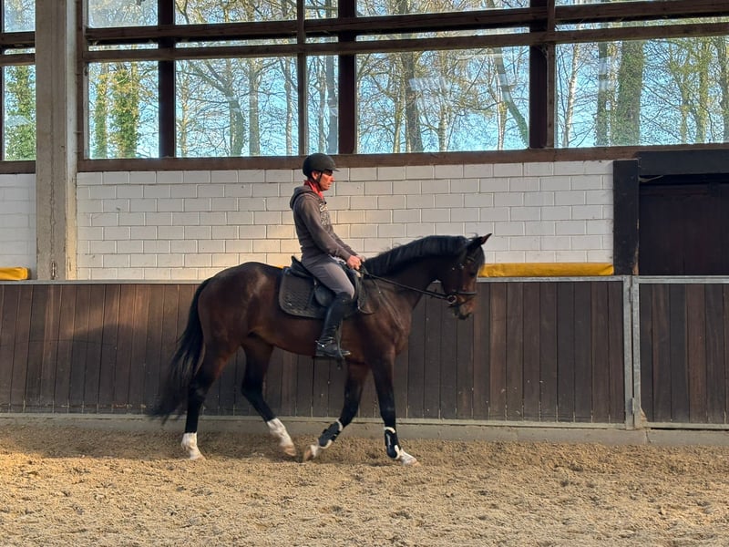 Te koop staat een prachtige 5-jarige merrie (ongeveer 1,67 m) met dressuurafstamming (Taurus x Soliman de Hus). Ze is aangezad, maar toont zich in omgang en onder het zadel als zeer karaktervast. Ze gaat graag veel naar buiten en wordt daarom voornamelijk aangeboden als fokmerrie of onder voorbehoud berijdbaar. Plaats gaat voor prijs.