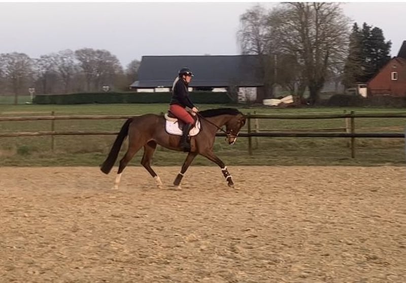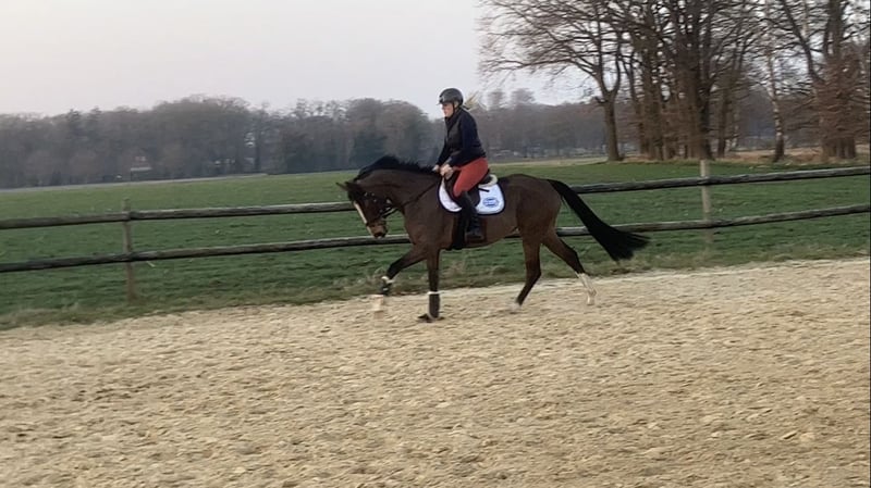 5-year-old Hanoverian mare from the breeder "Von und Zu" – Don Bosco x Prince Thatch xx Noble Hanoverian mare, linebred to the grand sire "Prince Thatch xx," candidate for premium status, with excellent dressage aptitude, combined with good rideability and a friendly, human-oriented nature. Notably, she has an active hindquarters with an outstanding walk. Her training was approached in a calm, trust-based manner by an amateur rider and show jumper, providing a solid foundation for her further development. A raw diamond with great potential for sport or leisure riding. Half-siblings have already achieved success up to multiple Grand Prix victories. Very good X-ray results. Tel. 0171 9901553