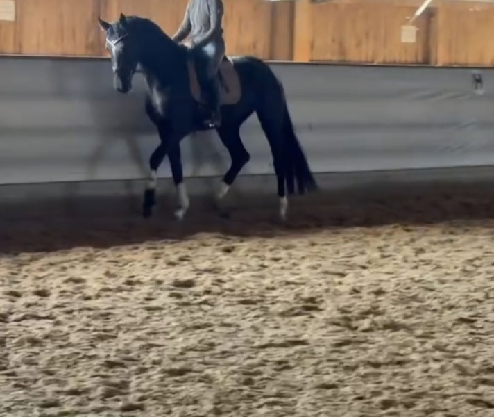 Diese beeindruckende Hannoveraner Stute wurde im Jahr 2021 geboren und besticht durch ihre elegante Erscheinung und ihr vielversprechendes Potenzial im Dressursport. Mit ihrem kräftigen Stockmaß von ca. 170 cm vereint sie Größe, Präsenz und Bewegungsqualität in idealer Balance. Besonders hervorzuheben ist ihr ausgeglichenes Wesen: Im Umgang zeigt sie sich äußerst lieb, menschenbezogen und verschmust. Die Stute hat bereits ein gesundes, typvolles Fohlen zur Welt gebracht und überzeugt somit nicht nur durch ihre Qualität unter dem Sattel, sondern auch in der Zucht. Die Rappfarbe unterstreicht ihren edlen Charakter und macht sie zu einem echten Blickfang im Stall und auf dem Turnierplatz. Sie ist gut geritten, zeigt eine aufgeschlossene und freundliche Natur und ist bereits in der Grundausbildung gut vorangekommen. Ihre Bewegungen sind taktklar, schwungvoll und ausdrucksstark – perfekte Voraussetzungen für eine erfolgreiche Karriere im Dressurviereck. Diese Hannoveraner Stute ist für ambitionierte Reiter und Züchter gleichermaßen interessant, die eine talentierte, gut gerittene Partnerin suchen, um gemeinsam an ihren Dressurlektionen zu arbeiten und Erfolge zu erzielen. Sie ist gesund, regelmäßig entwurmt und frei von bekannten gesundheitlichen Einschränkungen. Eine tolle Stute für Reiter, die ein ehrliches, unkompliziertes und gleichzeitig vielseitig einsetzbares Pferd suchen – egal ob für Freizeit, Sport oder Zucht. Ein Pferd mit viel Potenzial, das noch weiter gefördert werden kann. Für weitere Informationen oder einen persönlichen Eindruck stehe ich gerne zur Verfügung.
