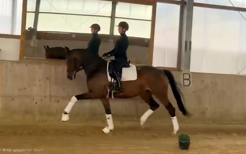 Quintana ist ein top Ausbildungspferd mit sehr guter Trabmechanik und der richtigen Arbeitseinstellung, sie ist jeden Tag mit Freunde bei der Arbeit. Spielerisch bereiten wir sie gerade auf L Lektionen vor.