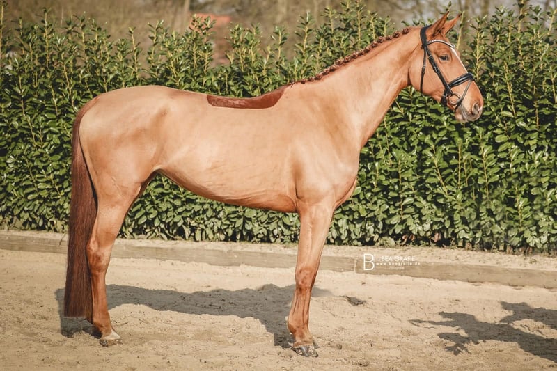 Vendo elegante yegua Hannoverana, ideal para doma Se ofrece una hermosa yegua Hannoverana, nacida en 2020. Con su llamado pelaje alazán y una imponente altura de 1,71 m, es un auténtico atractivo visual y destaca tanto por su movimiento como por su presencia. Esta talentosa compañera de doma impresiona por su versatilidad y su disposición para aprender. Está bien preparada, es dócil en el manejo y muestra un gran potencial para la alta competición en doma clásica. Además, ha participado en 5 concursos y ha obtenido 4 colocaciones, incluyendo una victoria en la prueba de doma clásica A. Estoy a disposición para proporcionar más información y para una visita si lo desea.