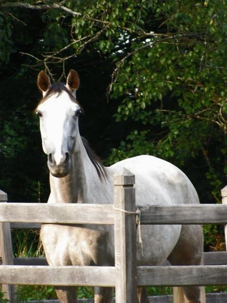 **For Sale: Beautiful Hanoverian Mare** For sale is a talented Hanoverian mare, born in 2020. She is an elegant chestnut gray with a height of 165 cm and impresses with her graceful appearance and friendly nature. This mare has great potential in show jumping and already shows promising progress in her training. She is suitable for both experienced riders and ambitious beginners who wish to further develop their skills. The mare is well-mannered, well-trained, and in excellent health. She is regularly vaccinated, dewormed, and has a current health check. If you are looking for a talented and loving partner in equestrian sports, then this Hanoverian mare is just right for you! If you are interested or need further information, please feel free to contact me. Viewings are possible by appointment.