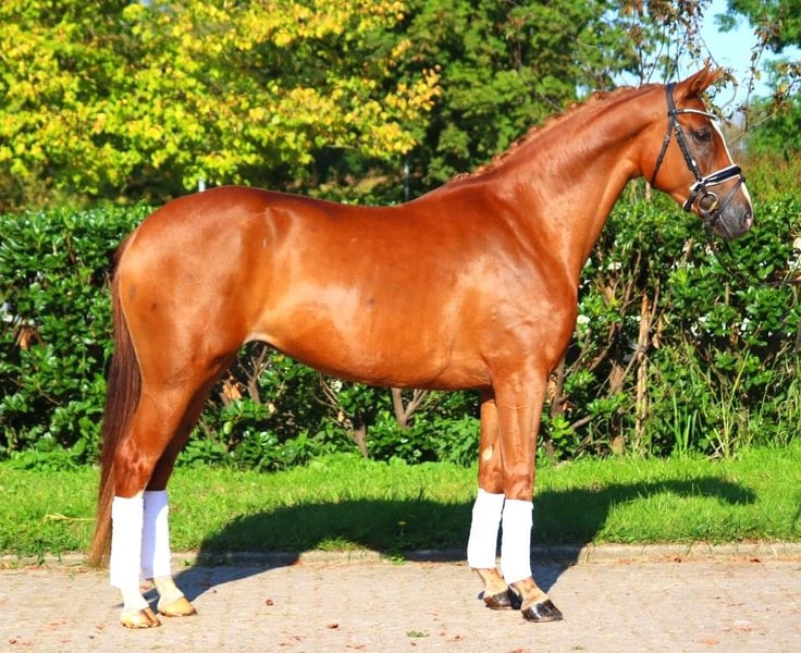 Affascinante puledra Hannoverana di 5 anni, con prestazioni di stallone di Benicio e Fürst Romancier, dotata di tre ottimi giri fondamentali. È molto docile nel maneggio e presenta un’eccellente capacità di cavalcata. Ha dimostrato le sue qualità durante la prova di prestazione della fattrice, ottenendo valutazioni di 8,0 o superiori in tutti i parametri, con il passo valutato addirittura 9,0. Viene venduta direttamente dal allevatore. Prezzo più IVA. Richieste solo telefoniche, le email non verranno risposte.