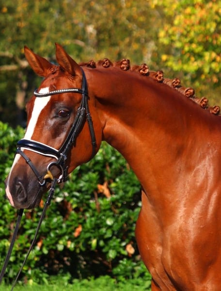 Sympathische 5 jährige Hannoveraner Prämienstute von Benicio x Fürst Romancier, mit drei sehr guten Grundgangarten. Sie ist super brav im Umgang und mit einer tollen Rittigkeit ausgestattet. Dies konnte sie anhand ihrer Stutenleistungsprüfung unter Beweis stellen, wo sie für Grundgangarten und Rittigkeit durchweg Noten von 8,0 und besser erhielt. Der Schritt wurde sogar mit einer 9,0 bedacht. Direkt vom Züchter zu verkaufen. Preis zzgl. Mwst. Anfragen nur telefonisch, E-Mails werden nicht beantwortet.