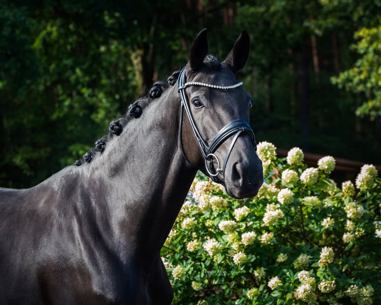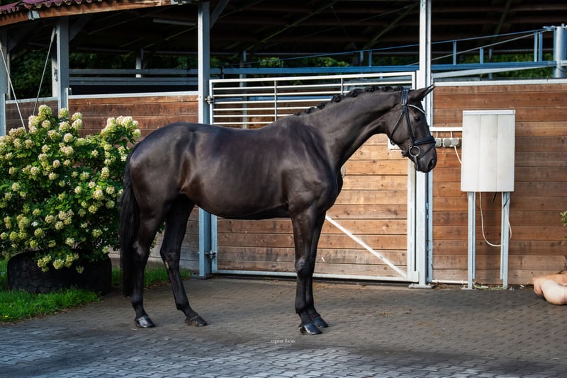 Morricone's Märchen is a charming, honest Hanoverian mare with a refined character and pleasant rideability. As the daughter of the stallion Morricone out of a Don Schufro mare, she combines two lines renowned for their rideability, willingness to perform, and reliability. She consistently demonstrates a eager learning attitude, calmness, and lightness in her frame—an ideal young horse for riders who value good riding qualities and a clear mind. Morricone's Märchen completed her mare performance test with the predicate "State Premium Mare." She received an 8.5 in all basic gaits, as well as for rideability under an external rider—an impressive testament to her quality and pleasant riding sensation. In daily handling, she proves to be absolutely well-behaved, uncomplicated, and reliable, both in the stable and during work. She is ideally suited for amateurs or trainers seeking a young horse with excellent potential for further development.
