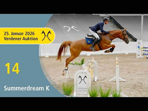 Summerdream K ist ein Ausnahmepferd der besonderen Art. Reaktionsschnell, energisch, mit Ehrgeiz und sportlicher Einstellung am Sprung. 2024 hatte sie bereits ein prämiertes Hengstfohlen von Madness und viele ihrer Halbgeschwister sind erfolgreich in Aufbauprüfungen des Springsports und wechselten als begehrte Springpferde den Besitzer über die Verdener Auktion. Großmutter Salome K stellt das S-erfolgreiche Springpferd Clinta v. Clinton II. Prämie: Vet+ 1. Generation Aufbauprüfungen Springen: Claire 155 v. Castino (SPR: 1,30 m mit Dennis Diercks,VA 2015). Auktionspferde: Kiss me tonight v. Kétanou (VA 2021); Cloud Control v. Clinton's Heart (VA 2020); Story of Love v. Stakkato (VA 2019); Chantilly v. Castino (VA 2016); Arko´s Boy v. Arko (VA 2016); Lagazoui W v. Linton (VA 2013). 2. Generation Sportpferde Springen: Clinta 5 v. Clinton II (SPR: 1,40 m mit Daniel Könemund); Skyfall 51 v. Stakkato (SPR: 1,35 m mit Evi Tilger,VA 2017). Aufbauprüfungen Springen: Casino Royal 40 v. Cassus (SPR: L,VA 2016). Auktionspferde: Kingsland v. Khedira (VA 2023); Layla v. Light My Fire (VA 2022); Corvara v. Carenzo (VA 2015); Cortina/Cortina 231 v. Cassus (VA 2015); Tigger W v. Tinka's Boy (VA 2013). Bes. Prämientöchter: StPr Alta Badia v. Acord II. 3. Generation Sportpferde Springen: Sam HS v. Stakkato (SPR: 1,40 m mit Rene Prendel); Raika/Raika 146 v. Raphael (SPR: 1,30 m mit Inga Doreen Lüeß); Malibu/Malibu 48 v. Maurice (SPR: M mit Glienewinkel,Christian). Aufbauprüfungen Dressur: Don Werther v. Dream of Glory (DRE: L). Aufbauprüfungen Springen: Rigoletto 112 v. Ritual (SPR: M mit Prendel,Rene); Salome K/Salome v. Sandro (SPR: L,VA 1997). 4. Generation Sportpferde Dressur: Navajo 67 v. Narew (DRE: S mit Kubelke,Jörn,VA 1994); Graf Gismo 5 v. Graf Grannus (DRE: M* mit Cornelia Sachser). Sportpferde Springen: Quanna/Quanna 3 v. Quaterback (SPR: 1,35 m mit Kaya Schwarz). Aufbauprüfungen Dressur: Querido/Querido 55 v. Quadroneur (DRE: L,SPR: 1,30 m mit Lydia Staufenbiel). Aufbauprüfungen Springen: Querido/Querido 55 v. Quadroneur (DRE: L,SPR: 1,30 m mit Lydia Staufenbiel); El Cid 57 v. El Bundy (SPR: L); Luciana/Luciana 87 v. Lanciano (SPR: L). Auktionspferde: Gauklerin v. Graf Grannus (FoVA 1998); Grannica/Granico v. Graf Grannus (FoVA 1997); StPr White Star/Stpra Whitestar v. Werther (VA 1991). 5. Generation Sportpferde Dressur: Dolce Vieta/Dolce Vieta Newland v. Don Crusador (DRE: Grand Prix mit Markus Becker,Dressurprüfung Kl. S*** - Grand Prix de Dressage 2018,VA 2009); Cinderella/Cinderella 243 v. Carbid (DRE: Grand Prix mit Matthew Dowsley,Dressurprüfung Kl. S- Grand Prix Special - 2007,Dressurprüfung Kl. S- Grand Prix Special - 2006,Dressurprüfung Kl. S- Grand Prix de Dressage 2006,VA 2000: 69.000 €); HannPrA Lotusblume/Lotusblume 11 v. Londontime (DRE: S** mit Larissa Eßmann); LS-Dr Donna Felicia/Donna Felicia 2 v. Don Crusador (DRE: S** mit Friederike Martin,VA 2010); Lando R v. Loredo (DRE: S** mit Veronika Koch,VA 1997); Lotus 256 v. Londontime (DRE: S* mit Larissa Eßmann); StPrA Frigga S/Finnly v. Fabriano (DRE: M** mit Philine-Sophie Merkl,VA 2005: 50.000 €); Diamond Queen/Diamond Queen S v. Don Bosco (DRE: M** mit Tina Wehlmann,VA 2009); Dakota's Grace v. Don Crusador (DRE: M* mit Loretta Würtenberger); Lucky 1220 v. Le Primeur (DRE: M* mit Mareike Schimek,SPR: L). Sportpferde Springen: Quax 17 v. Quidam de Revel (SPR: int. 1,50 m mit Meredith Michaels-Beerbaum); Sweet Temptation 2 v. Stanley (SPR: 1,40 m mit Katharina Schlosser,VA 2015); Wallot/Wallou 5 v. Wolkenstein II (DRE: L,SPR: 1,30 m mit Leonie Schürmann); CONRAD v. Catoki (SPR: 1,55 m mit Alexander Zetterman,Grand Prix Table A 2022,Grand Prix Table A 2021,Grand Prix Table A 2021); Staubkind RZ v. Stanley (SPR: 1,40 m mit Mario Bichler); Emma Peel S./Evora S v. Escudo I (SPR: 1,35 m mit Yvonne Widera); Delius A v. Diarado (SPR: 1,30 m mit Nele Heimbrock); Chocolate RZ v. Casanova Royal (SPR: 1,30 m mit Karen Boos Pegler); Call me Calle 5 v. Cassus (SPR: 1,30 m mit Lisa Zoller); Carlchen 23 v. Carbid (SPR: 1,30 m mit Valerie Westbomke); Rubin 484 v. Rosentau (SPR: M mit Hans-Günter Stürze,VS: int. M mit Julia Weiser); Wilster 17 v. Werther (SPR: M mit Güttler,Tardie); gek. Hengst Wetterhorn/Willy Vanilly v. Werther (SPR: M mit Fuelber,Daniel,). Sportpferde Vielseitigkeit: Rubin 484 v. Rosentau (SPR: M mit Hans-Günter Stürze,VS: int. M mit Julia Weiser). Aufbauprüfungen Dressur: Fortina W 3 v. Franziskus (DRE: L); Zickzack W v. Zoom (DRE: L); Coimbra/Cantate 30 v. Conteur (DRE: L,SPR: L). Aufbauprüfungen Springen: Élysée 3 v. Stanley (SPR: L); StPr Cleo S./Cerafina 6 v. Conteur (SPR: L,VA 2008); Coimbra/Cantate 30 v. Conteur (DRE: L,SPR: L); Sputnick S v. Stakkato (SPR: L). Auktionspferde: Be Happy v. Buckingham (VA 2019); Bubi 568 v. Belissimo M (VA 2016); Exchange v. Escudo I (VA 2009); Eminem v. Escudo I (VA 2009); Summer Night 6 v. Fabriano (FoVA 2004); Saint Malo v. San Brasil (VA 2007); StPrA French Affaire/French Affairs v. Fabriano (VA 2004); Roxsand VA/Rosazea v. Rosentau (VA 2003); Lotus v. Longchamp (VA 2002); Lafayette/Lucifer v. Loredo (FoVA 1992,Louis Wiegels-Schau Filsum 1995). Bes. Prämientöchter: StPr Whoopi v. Weltmeyer; StPr La Douce/La Douce 6 v. Loredo; StPr Cardella v. Calypso II; StPr Grandella v. Grand Garcon (Siegerstute Louis Wiegels-Schau Uelzen 1992,Ratje Niebuhr-Schau Verden 1994,Bundesschau Warendorf 1994); StPr Wakonda v. Werther (Ratje Niebuhr-Schau Verden 1988,Louis Wiegels-Schau Uelzen 1992,Bundesschau Warendorf 1994,Bundesschau Warendorf 1994,Bundesschau Warendorf 1994,Ratje Niebuhr-Schau Verden 1994); StPr Domamsel v. Duktus (Ratje Niebuhr-Schau Verden 1988). Mutter: Alta Badia Prämierung: 1xIa. ZL: 11/8 ZSP: Feldprüfung Reitpferd - Trab 6,50 Galopp 7,00 Schritt 6,50 / Durchschnitt Rittigkeit 7,00 / Durchschnitt Springen 8,50 Großmutter: Salome K ZL: 9/7 ZSP: Stationsprüfung Reitpferd - Trab 6,50 Galopp 7,50 Schritt 6,50 ø Durchschnitt Rittigkeit 7,67