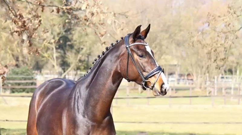 Ta imponująca 5-letnia klacz po Q-Sieben x Fiorano x Weltmeyer zachwyca nie tylko swoim wdzięcznym wyglądem, ale także poprawnymi, wyrazistymi i eleganckimi ruchami. Została bardzo delikatnie osiodłana i może rozpocząć sezon turmowy w tym roku. Jest chętna do pracy i nauki, co sugeruje ogromny potencjał. Jej o rok starszy brat pełnej krwi został ogłoszony na Hannover, zdobył tytuł zwycięzcy w teście ogierów w 2-dniowym teście z łączną oceną 8,94 (galop 9,7), był rezerwowym mistrzem kraju w Dolnej Saksonii i uczestnikiem Bundeschampionat. Ze strony matki również ma bardzo dobre pedigree z starego hanowerskiego rodu klaczy z 1883 roku. Rodzeństwo matki zostało sprzedane po wysokich cenach na aukcjach Elite w Klosterhof Medingen i w Verden. Liczne klacze z tytułem państwowym pochodzą z bezpośredniej linii matki, a także ogier Edinburgh oraz odnoszący sukcesy do St. Georg Weltgraf II z 3. matki Debatte, której siostra urodziła udanego Laudabilisa z ponad 10 ogierami pełnej krwi. Lena to obiecująca klacz o wspaniałym charakterze, która ma wszystko, co potrzebne do odniesienia dużych sukcesów w wielkim czworoboku. Codziennie przebywa na pastwisku, była regularnie szczepiona i odrobaczana. Obecnie chodzi jeszcze bez podków. Nie stwierdzono żadnych nieprawidłowości w badaniach rentgenowskich. Bezpośrednio od hodowcy.