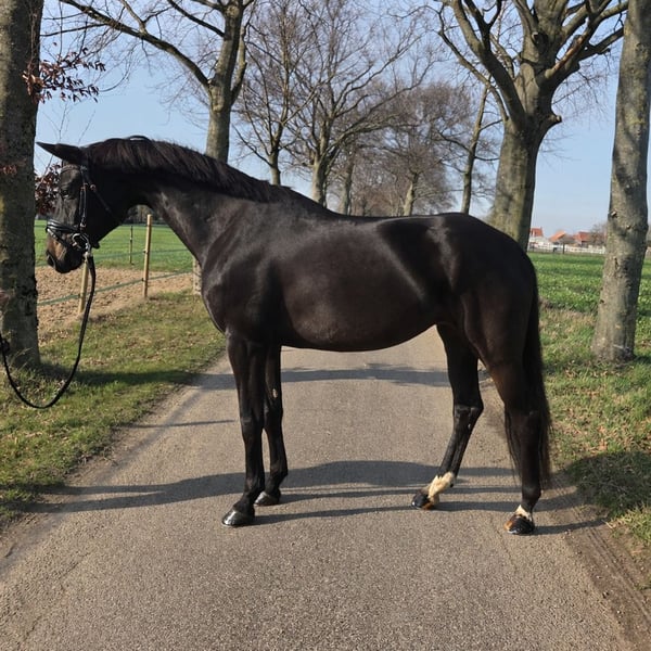 Femme Fatale V. Feinrich • Merrie • 1,66 m • Geen (blijvende) gebreken • Correcte houding • In eigendom van de fokker Femme is een prachtige merrie die zich onder het zadel goed en betrouwbaar laat rijden en over een krachtige galop beschikt. In het verleden is ze ook veel in het bos gereden. Ze nam met ons deel aan een oefenwedstrijd en behaalde de L-klasse met uitstekende cijfers. We zouden haar graag zien rijden bij een ervaren ruiter. Video op aanvraag