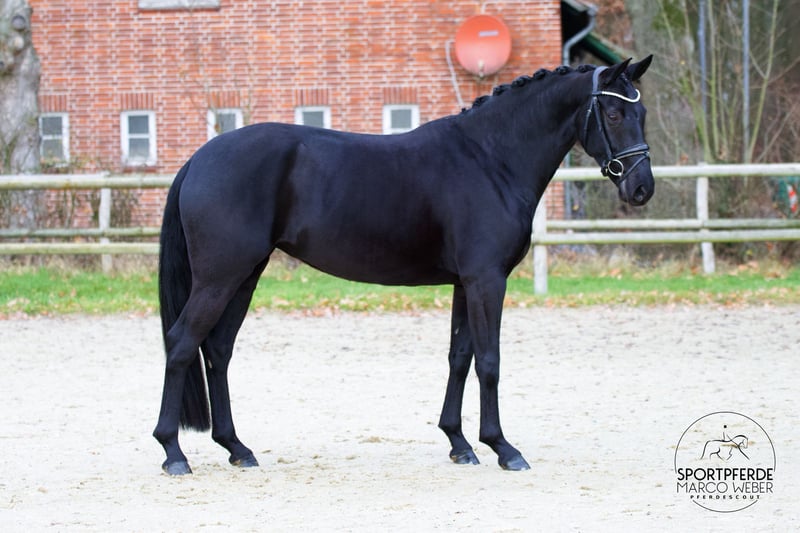 Hannoveraner • Rappstute • *2019 • ca. 1,67 m ⚜️ San Amour – Diamond Hit ⚜️ ✨ Qualität, Charakter & Perspektive – eine Stute für die Zukunft ✨ Diese moderne und typvolle Rappstute beeindruckt durch ihre Präsenz, ihre natürliche Balance und ihr durchweg positives Interieur. Sie bringt ein korrektes Fundament, gute Grundgangarten und eine sehr angenehme Rittigkeit mit – ideale Voraussetzungen für eine erfolgreiche Förderung im Dressursport. Aufgrund von Zeitmangel wurde sie erst dieses Jahr angeritten und durfte zuvor in Ruhe körperlich reifen. Seitdem zeigt sie eine bemerkenswert schnelle Entwicklung: Sie arbeitet aufmerksam mit, lernt sehr willig und bleibt dabei stets klar im Kopf. Eine Stute, die ihrem Reiter gefallen möchte und jeden Tag Freude macht. Abstammung: Vater San Amour zählt zu den bedeutendsten Dressurvererbern der letzten Jahre – bekannt für Rittigkeit, Typstärke und Leichtfüßigkeit. In der Mutterlinie steht Diamond Hit, ein international renommierter Grand-Prix-Vererber, der Kraft, Tragkraft und Bewegungstalent mitbringt. Diese Kombination verleiht der Stute ein hochinteressantes Leistungs- und Zuchtpotenzial. Ein guter Röntgen-TÜV inkl. Rücken liegt vor. Die Stute wird direkt vom Aufzüchter angeboten. 📍 Standort: Hoya 📞 Kontakt: +49 173 3013499 18 t. 🥕🥕🥕
