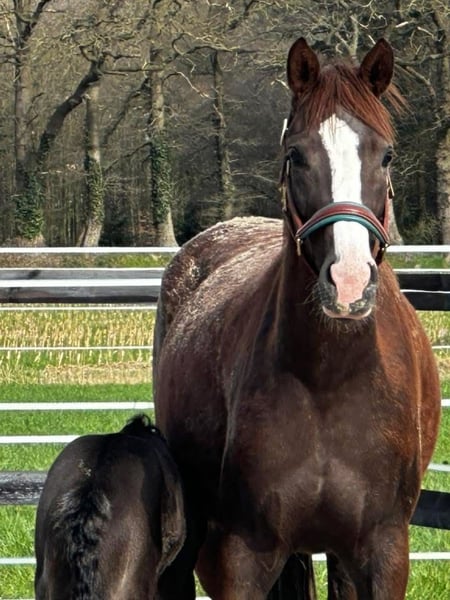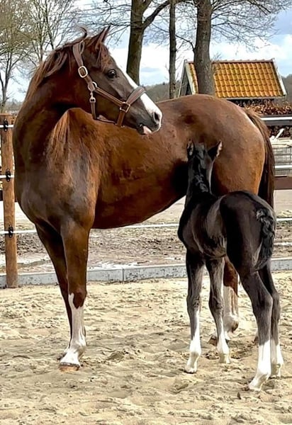 Lovely colorful mare (Livaldon x Vivaldi bloodlines) x Fürst Heinrich (ELITE mare, dam of stallions, three daughters registered with StPr, successful in S-level competitions, winner of BuCha qualification, etc.) Possibly with SF in hand for groundwork. Looking for a caring family environment.
