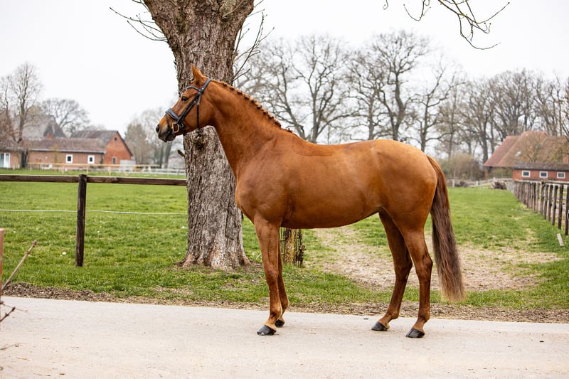 Rachel is a Hanoverian premium mare foaled in 2019, with a very gentle and easygoing temperament. She is an ideal horse for an ambitious rider, including young or junior riders, as she is excellent in handling—loading easily for one person, being friendly with other horses, enjoying cuddles, etc.—and also possesses significant potential under saddle. Last year, she already competed successfully in dressage horse class M and is now progressing towards S-level. Her X-rays are available and have been assessed as good by the veterinarian. We are an established breeding operation and also have other horses with various training levels for sale. Please feel free to contact us if you're interested!