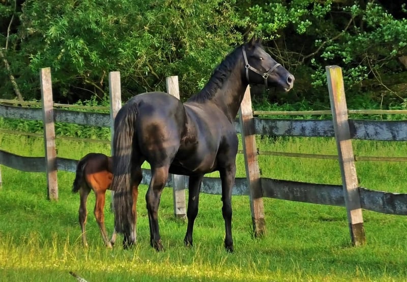 Imposante schwarze Perle "Gala Night" v. Glamourdale x Weltmeyer x Brentano II - 7 Jahre - 1,70 m - Rappe - Stabiles korrektes Fundament - Im Typ sehr vom Vater geprägt - Stutbuchaufnahme Note 8,0 - Eingetragen in Hannover und Oldenburg - WFFS negativ (Stute kann zum Abfohlen, zur Neubesamung und auch gerne bis zum Absetzen weiter noch bei uns bleiben) Sie ist eine gute Mutter, nimmt gut auf, unkomplizierte Geburten und Aufzucht, aus fruchtbarer Stamm. Sie hatte bereits 2 sehr gute bewegungsstarke Hengstfohlen von Escolar mit einem korrektem Fundament und besonders tollen Charakter. Der ertse Sohn ist jetzt 3-jährig besonders unkompliziert anzureiten gewesen. Gala Night selbs ist nicht geritten, kennt aber zumindest einen Gurt von Birthalarm. Dem direkten Stutenstamm, auch in unmittelbarer Verwandtschaft, entspringen zahlreiche gekörte Hengste, Staatsprämienstuten und sporterfolgreiche Nachkommen. Somit ist der Punkt Rittigkeit im Stamm abgesichert. Gala Night´s Mutter "Weltklasse" ist die Vollschwester zu den 3 gekörten Hengsten "WORLDLY I (LB Celle) + WORLDLY II (PB RUS)" und "WALCHENSEE" (PB RUS) Ausserdem ist Gala Night´s Halbschwester Quarta v. Quaterback Mutter des Siegerhengstes OLD 2020 "FORTUNATE" v. Foundation (Helgstrand) sowie dessen gekörten Vollbruder "FOR MAGIC"(Rüscher-Kohnermann). Die Vollschwester zu Gala Night´s Mutter "Weltklasse" ist "Whisper", Mutter zum gekörten Hengst "BOWINGHAUSEN" v. Bonds (HuL Marbach). Die Halbschwester von Weltklasse, "Werther Echte" v. Werther ist Mutter zum gekörten Hengst "ST. WERTHER" v. Sandro Hit. Mehrere Staatsprämienstuten sowie sporterfolgreiche Nachkommen bis Inter I finden sich ebenso in direkter Verwandschaft Dies ist nur ein kleiner kurzer Einblick in unseren Stamm (Stutenstamm der Shillon), der von uns seit über 30 Jahren über viele Generationen hinweg gepflegt wird. Die ideale Stute für den Einstieg in die Zucht oder zur qualitätvollen Erweiterung einer Zucht. Sie wird nur, wenn das Gefühl und Umstände passen, in gute Hände abgegeben. Ansonsten freuen wir uns im Mai 2026 sehr auf das Fohlen von V-POWER! Bei Interesse kann gerne ein Video zugeschickt werden. Fragen werden gerne zunächst per Email an info@zuchthof-vogel.com und später auch telefonisch beantwortet.