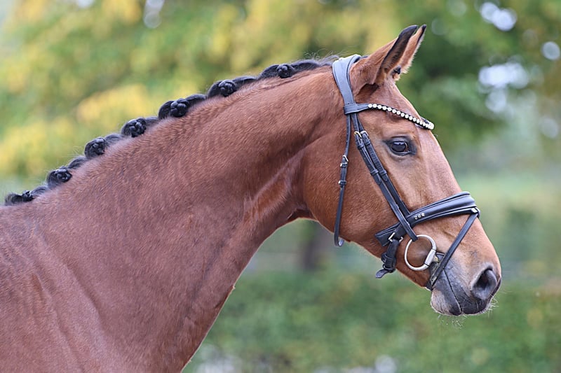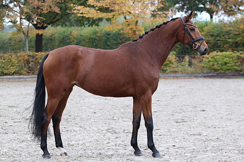 Typvolle, bildhübsche Stute mit harmonischem Körperbau und ausdrucksstarker Bewegung. Sie zeigt eine gute Grund-losgelassenheit und überzeugt mit solider Ausbildung auf L-Niveau. Unter dem Sattel präsentiert sie sich lernwillig, braucht jedoch eine erfahrene, feinfühlige Reiterhand, um ihr Potenzial weiter zu entwickeln und Vertrauen zu festigen. Ein charmantes Pferd für Reiter, die Freude an feiner Dressurarbeit und individueller Forderung haben.