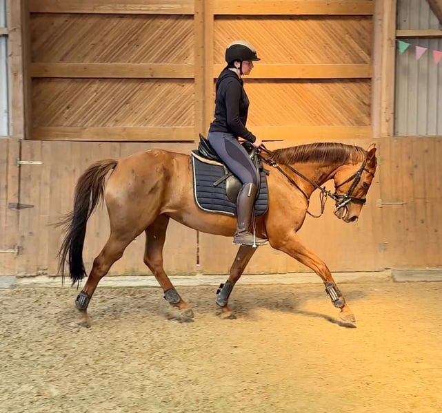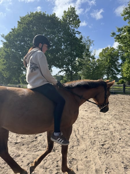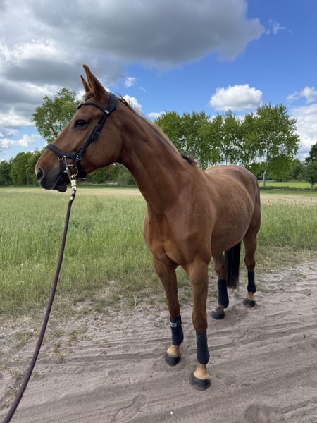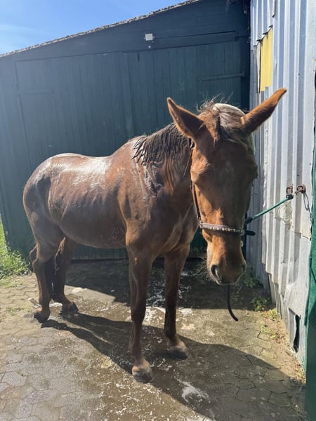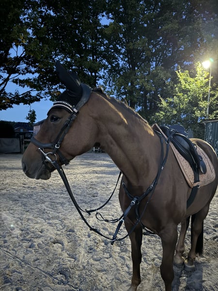 Hallo, ich bin Holly! Ich bin eine 8-jährige Hannoveraner Stute, etwa 1,65 m groß – und auf der Suche nach meinem neuen Herzensmenschen. Ich bin eine ganz liebe Seele und genieße es, wenn man sich ruhig und freundlich mit mir beschäftigt. Leider finden ich und meine jetzige Besitzerin nicht richtig zusammen und ich kann ihr nicht das bieten was sie verdient hat. Putzen, kuscheln, spazieren gehen – das ist genau mein Ding! Ich liebe die gemeinsame Zeit mit Menschen, die geduldig und feinfühlig mit mir umgehen. Leider darf ich aufgrund einer Durchtrittigkeit und einer kleinen Fehlstellung keine Sprünge mehr machen. Das ist aber gar nicht schlimm, denn ich habe sehr schöne Gänge und freue mich, wenn ich in der Dressur weiter gefördert werde. Ich bin angeritten und lerne fleißig dazu – ich möchte alles richtig machen und gebe mir immer Mühe, meinem Reiter zu gefallen. Beim Reiten bin ich manchmal etwas flott unterwegs, aber immer bemüht, brav mitzuarbeiten. Mit der richtigen Hand und Ruhe finde ich schnell in einen schönen Rhythmus. Ich gebe zu, Tierärzte und Hufschmiede finde ich nicht ganz so toll – da brauche ich jemanden, der ruhig bleibt und mir Sicherheit gibt. Wenn ich merke, dass ich vertrauen kann, lasse ich mich aber immer besser darauf ein. Nachts stehe ich übrigens sehr gerne in einer gemütlichen Box. Da kann ich in Ruhe entspannen und neue Energie für den nächsten Tag tanken. Ich wünsche mir ein Zuhause, in dem ich verstanden werde – wo man mich so nimmt, wie ich bin: eine sensible, ehrliche Stute, die gerne arbeitet, aber auch einfach mal Pferd sein darf. Wenn du dir eine treue Gefährtin wünschst, die mit Herz und Charakter an deiner Seite steht, dann freue ich mich darauf, dich kennenzulernen! Deine Holly