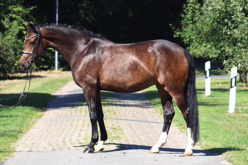 Secret Escape is a mare of above-average quality. She has a successful record in dressage horse class L and has begun training in class M. Due to an absolute lack of time, she is currently not in training and is being offered as a companion horse. Her excellent pedigree makes her highly interesting from a breeding perspective as well. Please contact only by phone at 015737881045.