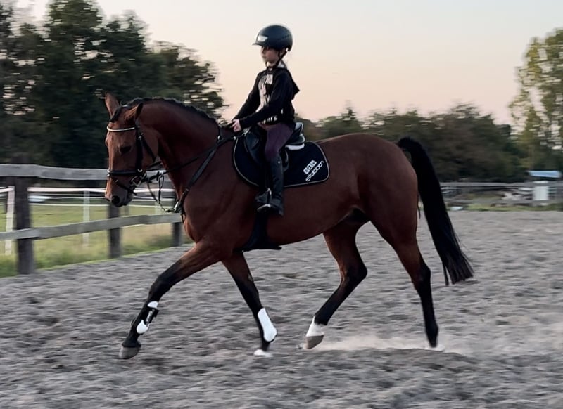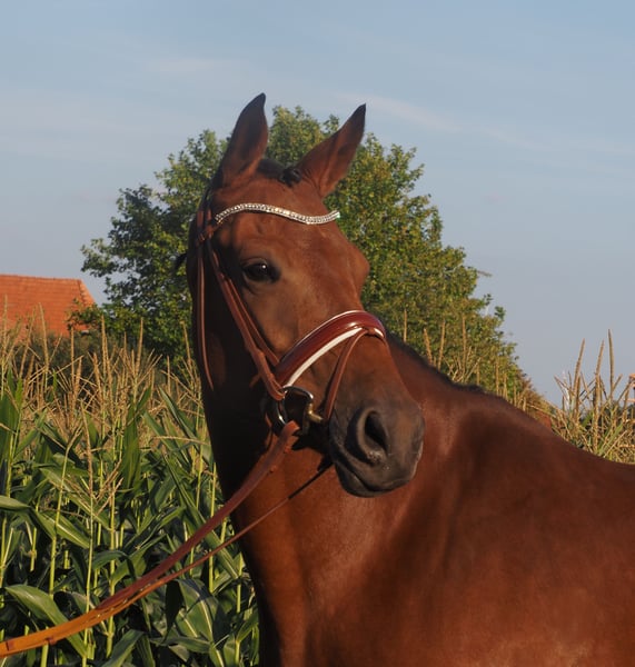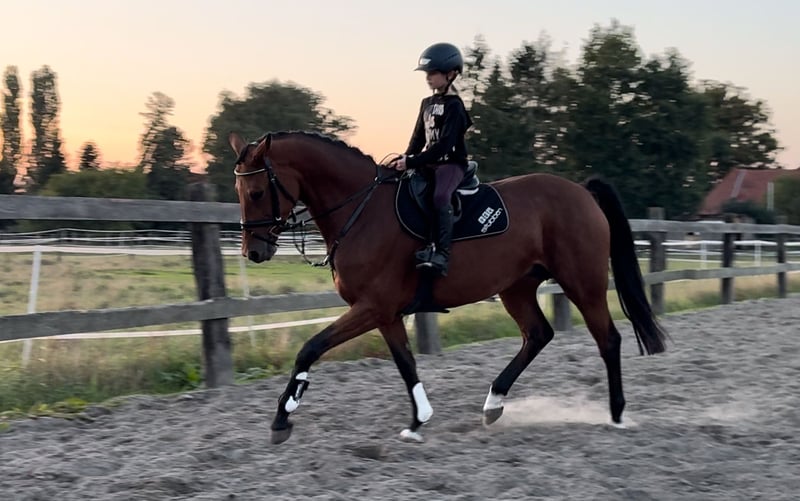 Łatwa w ujeżdżeniu klacz o znakomitym pochodzeniu! Z tego powodu przez ostatnie lata była w hodowli. Ostatnie źrebię zostało niedawno odsadzone i teraz jest ponownie szkolona. Dobrze reaguje na pomoce, bardzo towarzyska, skacze pięknie. Może być wykorzystywana jako koń sportowy lub rekreacyjny, na życzenie może być również pokryta naszymi ogierami w dowolnym momencie. Oczywiście zdrowa, brak znanych chorób wcześniejszych lub nietolerancji. Aktualny, bardzo dobry przegląd rentgenowski już jest dostępny. Zapytania dotyczące wideo itp. wyłącznie wstępnie przez WhatsApp.